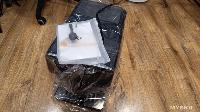 Внутри тоже всё, как надо. Кофемашина установлена между двух широких проставок из вспененного полиэтилена. За транспортировку из Китая можно не беспокоиться.