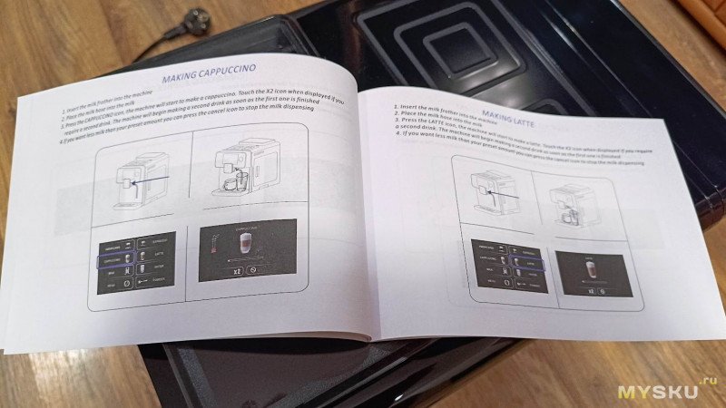 Инструкция имеет довольно качественную цветную полиграфию, но, как и сам интерфейс кофемашины, переведена с китайского лишь на английский язык. Онлайн-переводчик в помощь.