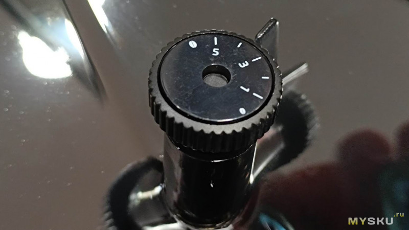 В бункере установлен регулятор степени помола с 5 степенями измельчения. С завода он стоит в среднем положении, пока оставим так, а потом посмотрим. Инструкция предписывает изменять помол только при работающей кофемолке. Я как всегда сначала покрутил, а потом прочитал инструкцию. Надеюсь ничего страшного не случилось. В этом же бункере имеется приёмное отверстие для уже помолотого кофе. Оно закрывается плотной крышкой.