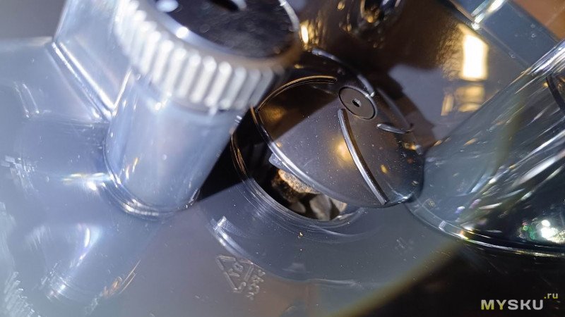 Бункер имеет наклонные стенки, по которым зёрна скатываются вниз, где установлены металлические конические жернова кофемолки. Перед продажей машину проверяют на производстве и под крышкой жерновов видны следы помола. Это нормально и не говорит о том, что вам продали б/у товар.