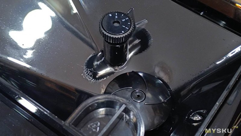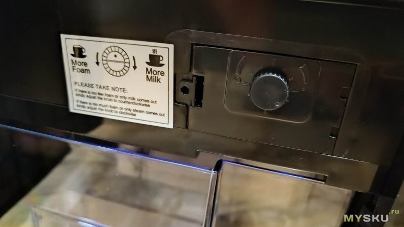 В отсеке с резервуаром находится регулятор настройки капучинатора. С его помощью можно увеличить, либо уменьшить степень преобразования молока в пену.