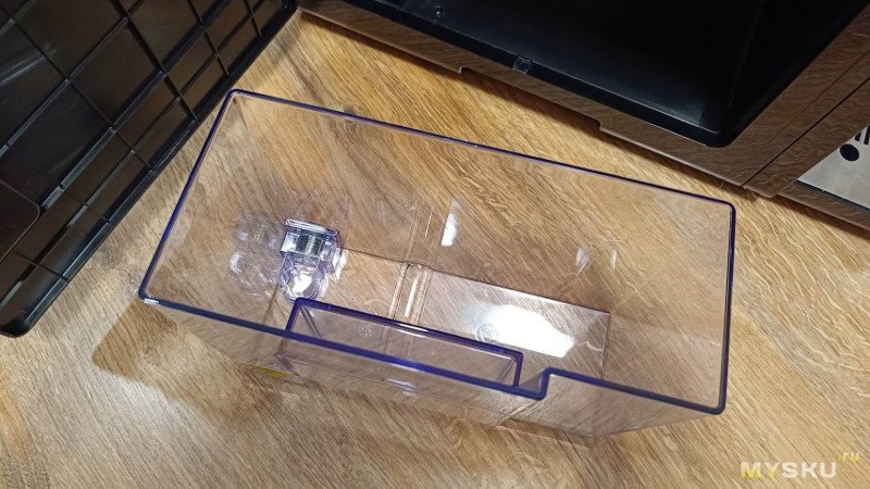 Значит пришла пора вытащить поддон и промыть его под струёй воды. Делается это очень легко и быстро, главное не расплескать воду, если поддон заполнен доверху. Проще мыть его раз в 2-3 дня.