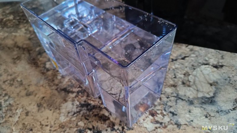 При приготовлении по одной кружке в день, поддон заполняется грязной водой где-то за неделю, о чём свидетельствует поднявшийся вверх поплавок.