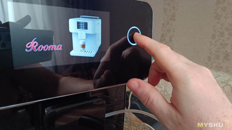 Всё управление процессом приготовления кофе производится при помощи сенсорного дисплея. При включении в сеть на нём появляется анимированная заставка с изображением кофемашины.