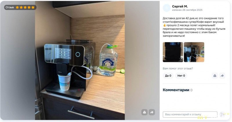 Вообще, после не оправдавшей себя покупки рожковой кофеварки, она была скептически настроена против автоматической кофемашины, а увидев её габариты, чуть и вовсе не выставила меня за дверь по обратному пути на пункт выдачи. Однако, попив несколько дней кофе из данного агрегата, сказала, что была не права и приносит свои извинения.