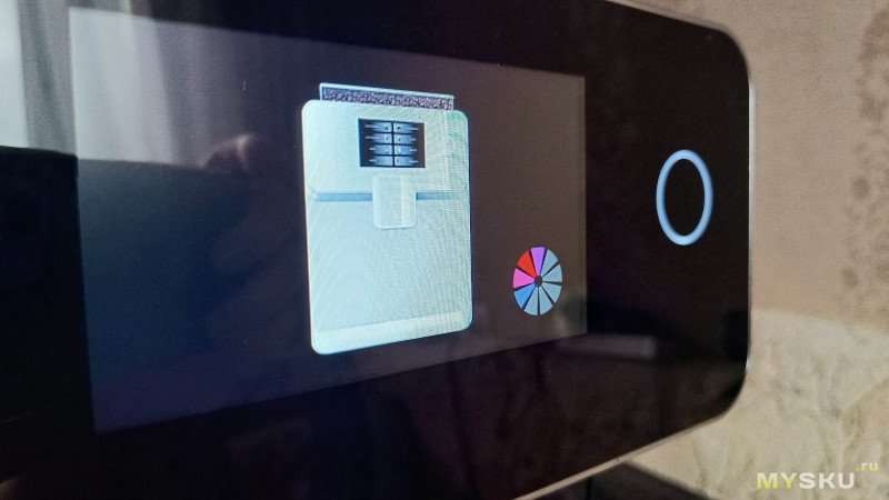 Далее включаем кофемашину долгим нажатием сенсорной кнопки справа от дисплея. На экране появляется кружок, разделённый на цветные секторы.
