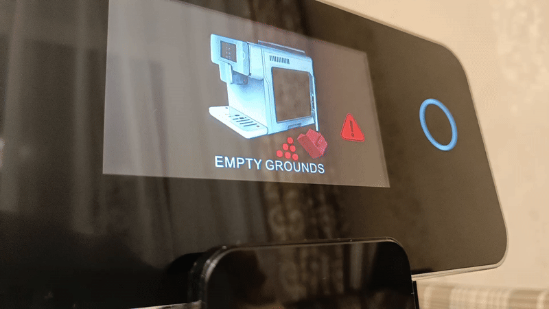 Когда бункер для жмыха заполняется, кофемашина сигнализирует звуком и наглядной анимацией о необходимости очистки.