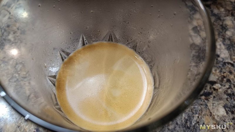 Если посмотреть внутрь кружки, то можно увидеть получившуюся пенку на кофе — крема.