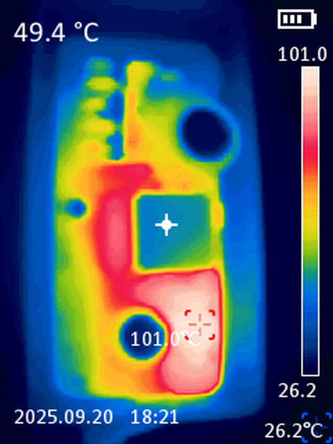 Внутри существенно нагреваются только два больших диода. Их температура при максимальном токе немного превышает 100 градусов.