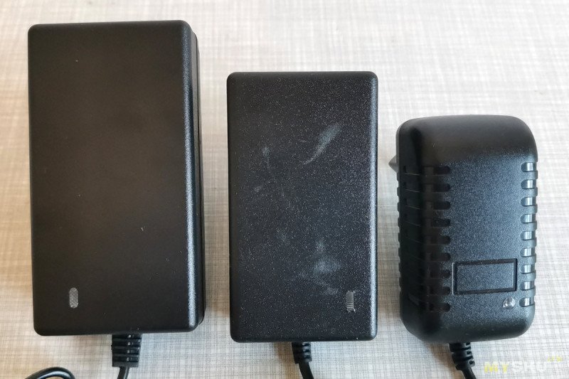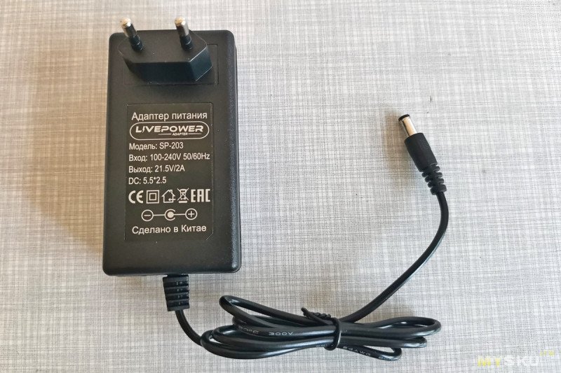 Указан тип разъёма 5.5x2.5, но фактически стоит универсальный разъём с «усиками», который подходит как для гнёзд 5.5x2.5, так и для 5.5x2.1.