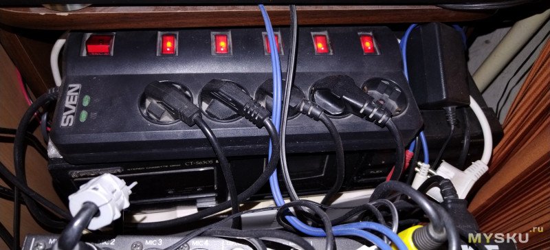 Но есть ещё несколько разных паяльников, горячий оловоотсос, сверлильный станок… это только то, что не имеет собственных выключателей.И вот однажды