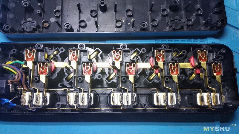 Ничего не магнитится, даже вилка сетевого шнура, только в выключателях что то слегка. Автоматический предохранитель на 10А (не обманули)