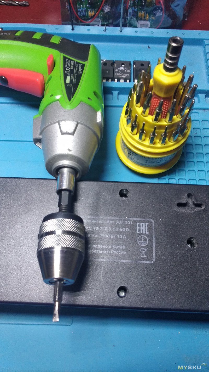 Сейчас одновременно бывают включены несколько устройств и некоторые, приходится отключать, за ненадобностью. Что то я переделывал, к примеру на паяльнике с Али китайскую вилку заменил на корпус от старого адаптера и вставил выключатель,