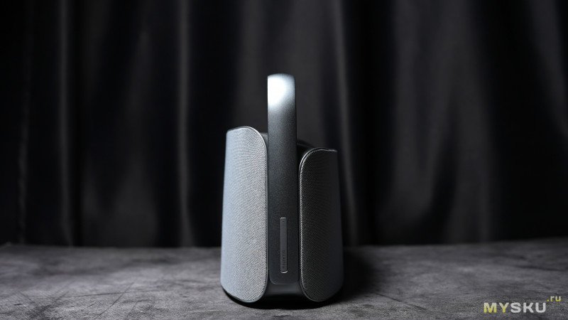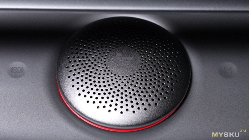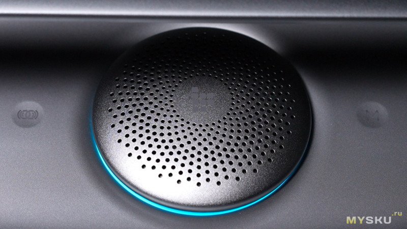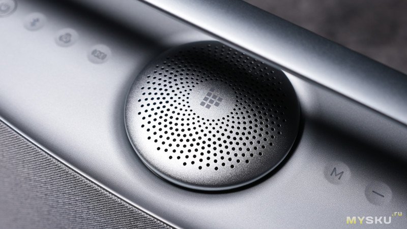 Наверху колонки можно заметить необычный металлический круглый элемент с отверстиями — за ним скрывается ещё один среднечастотный динамик, направленный в потолок и отвечающий за то самое пространственное звучание. Маркетинговое название этого динамика «sky driver». Для раскрытия эффекта пространственного звучания колонку следует располагать не у стены, а в центре помещения или комнаты.