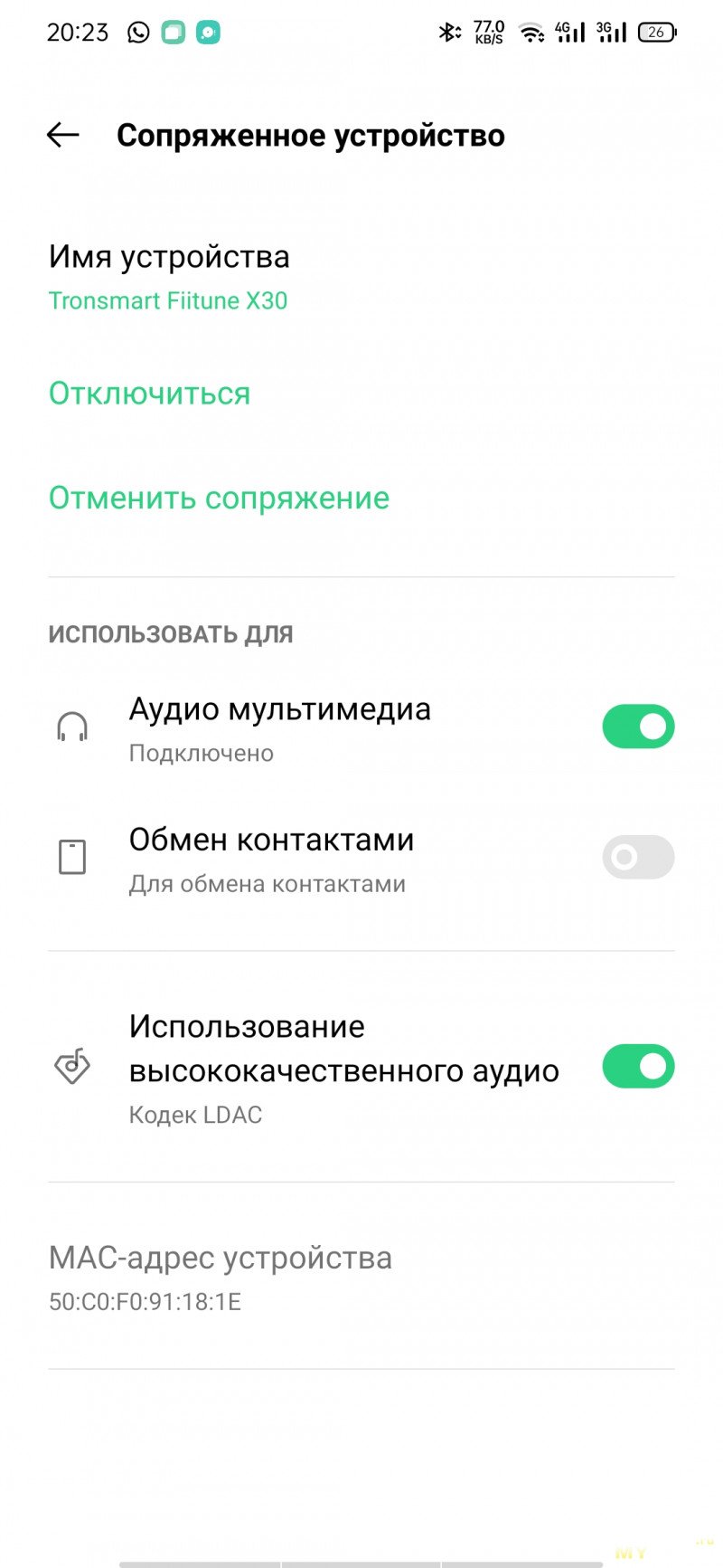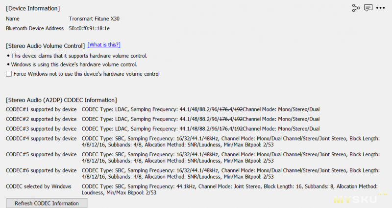 Посмотрим список поддерживаемых по Bluetooth аудиокодеков.Имеются обещанный LDAC и SBC, но кодеки промежуточного качества типа AAC отсутствуют.