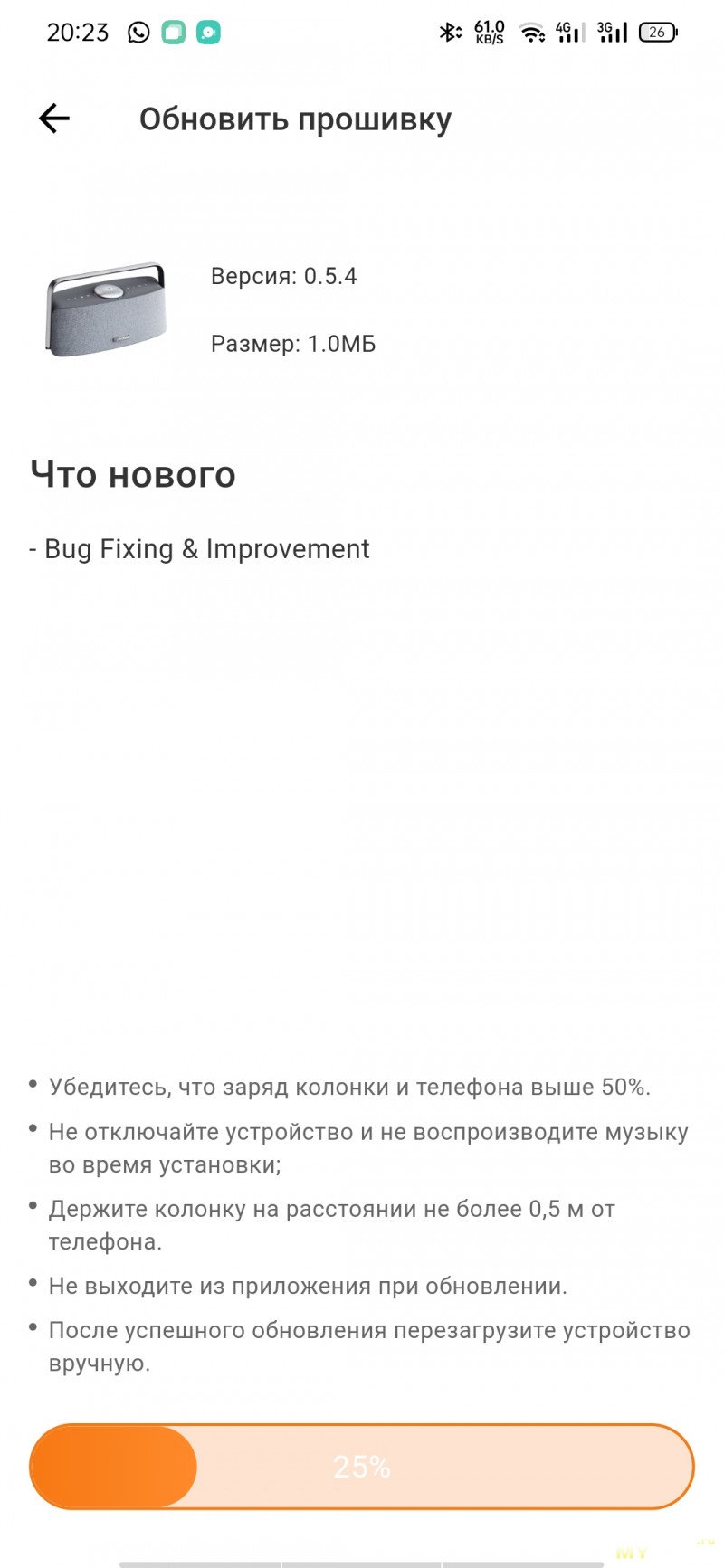 При использовании приложения не сразу, но спустя некоторое время прилетело обновление прошивки.