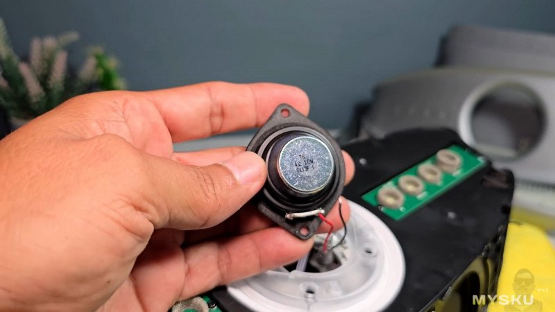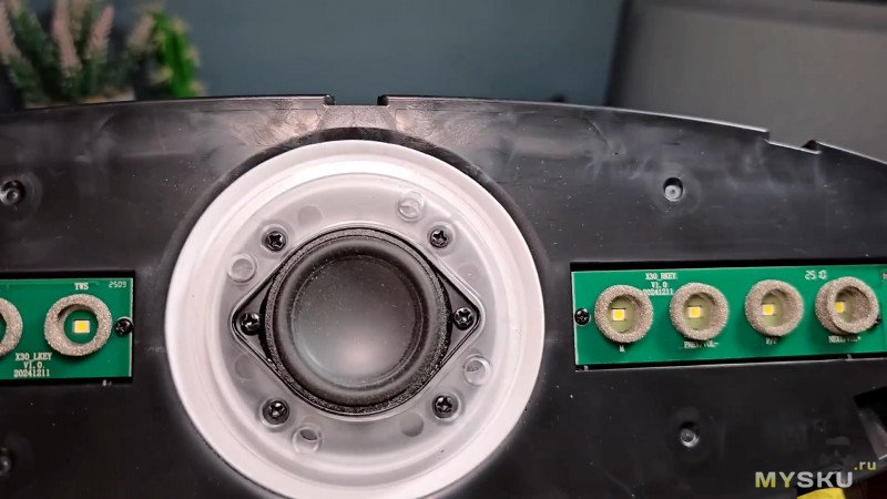 На обратной стороне тоже ткань, за которой скрыто ещё два пассивных излучателя.