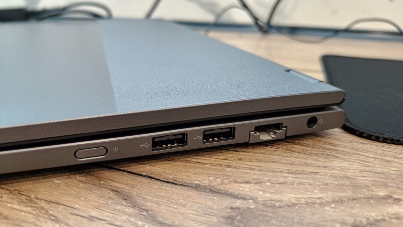 Интерфейсы выведены на боковые стороны. Тут 3 USD, один из низ по стандарту 3,2, а два других 2,0. Есть HDMI, питание, наушники и USB Type-C. Также есть кнопка включения, которую я уже успел пару раз нажать, когда поднимал и переносил ноутбук. В этом случае выключается экран, сам ноутбук остается в рабочем состоянии.