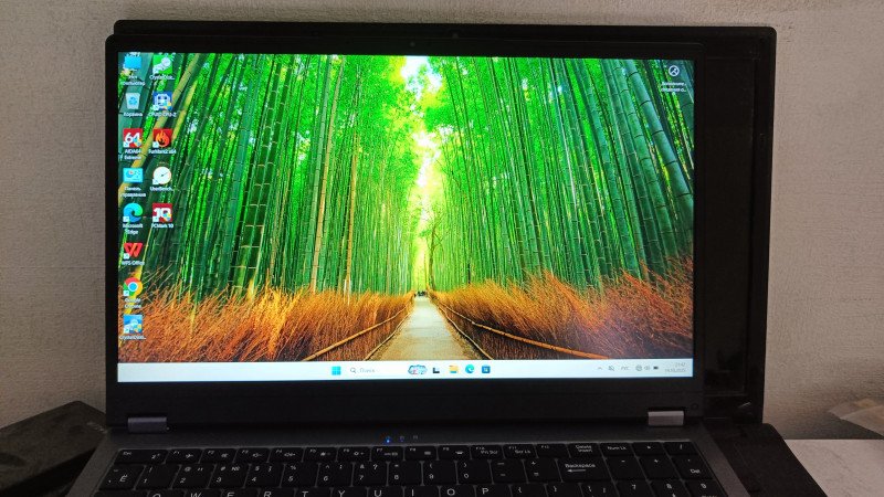 Экран на 15,6 дюймов с матрицей IPS. Углы обзора позволяют просматривать изображение на максимальных углах обзора без искажения картинки по цветам. Подсветка изображения равномерная. Покрытие экрана матовое, нет бликов на солнце, а яркости более чем достаточно для работы.