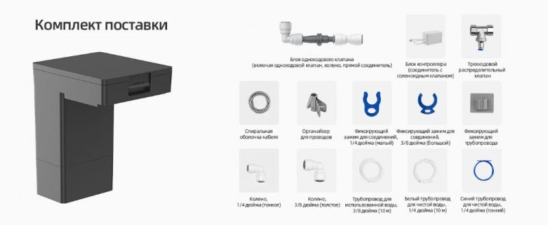 Второй лайфхак. Мало где указано, но этот робот может работать с водопроводом и канализацией. Для прямого подключения потребуется заменить штатные контейнеры на специальный резервуар. Это Г-образный модуль Dreame RAW7 (ссылка на модуль, текущая стоимость 7189 ₽), в комплекте шланги, электроклапан, инструкция по монтажу. Это реально круто, так как не нужно будет бегать сливать/заливать воду, что актуально при площади уборки 150-200 квадратов и более.