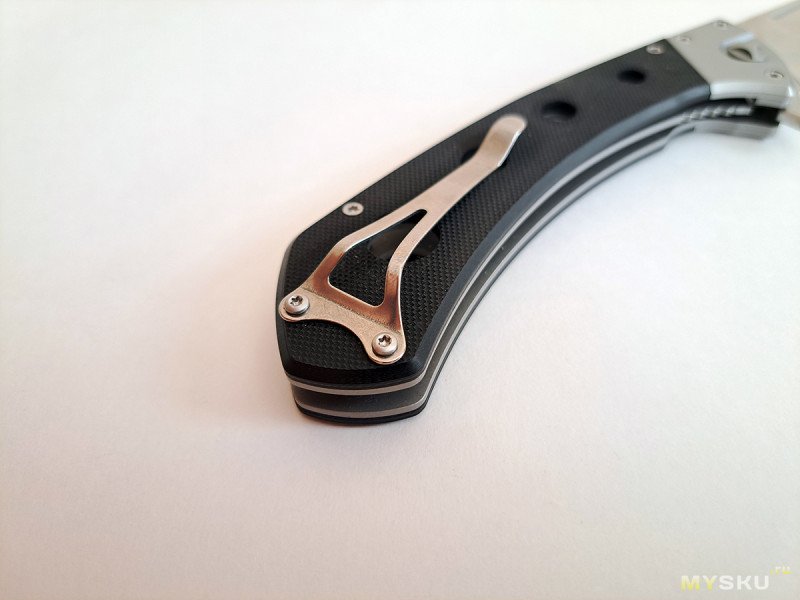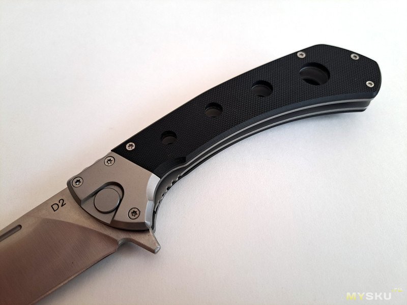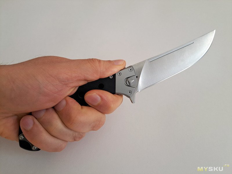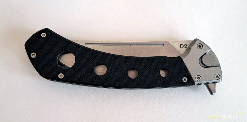 С замком ничего не произошло. Рукоять удобная, хотя и несколько плоская. Отверстия в рукояти добавляют ухватистости.