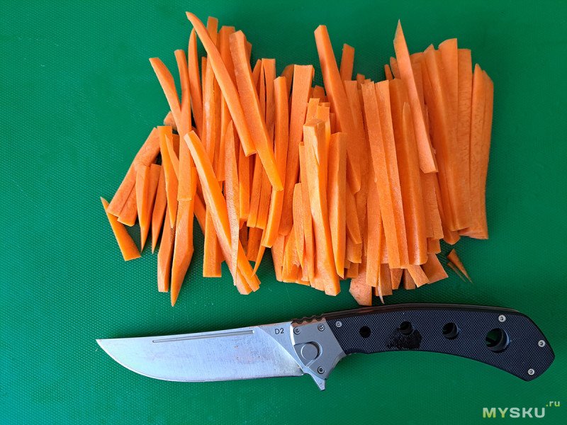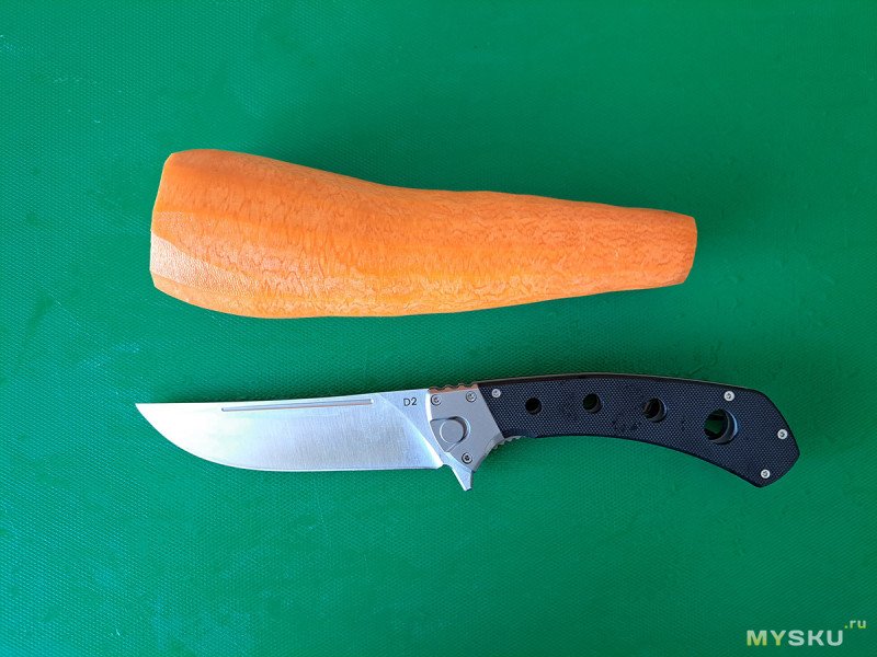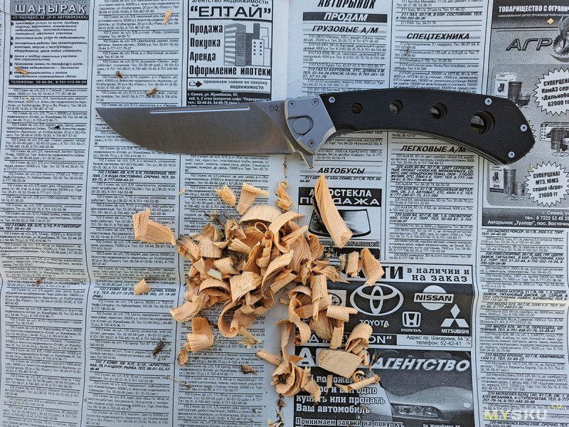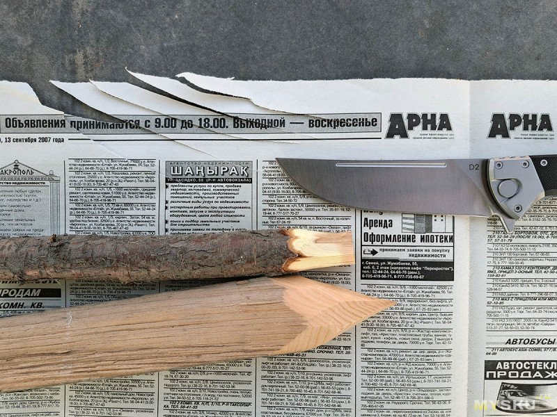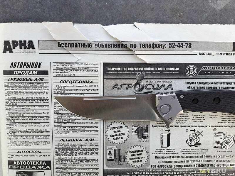 И после этого, неохотно, но режет газету. Так что, я верю в D2 у этого ножа))). Другой вопрос, какая у нее термообработка.