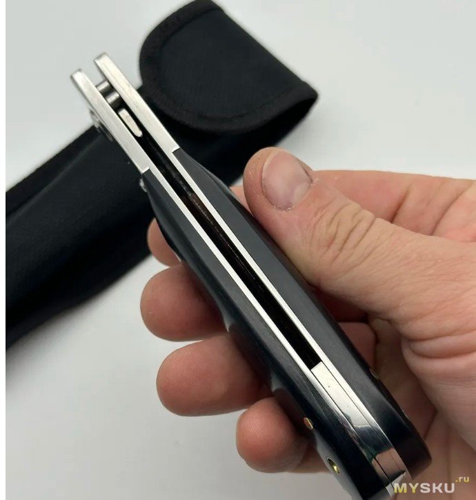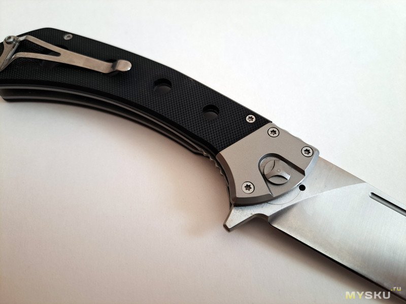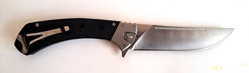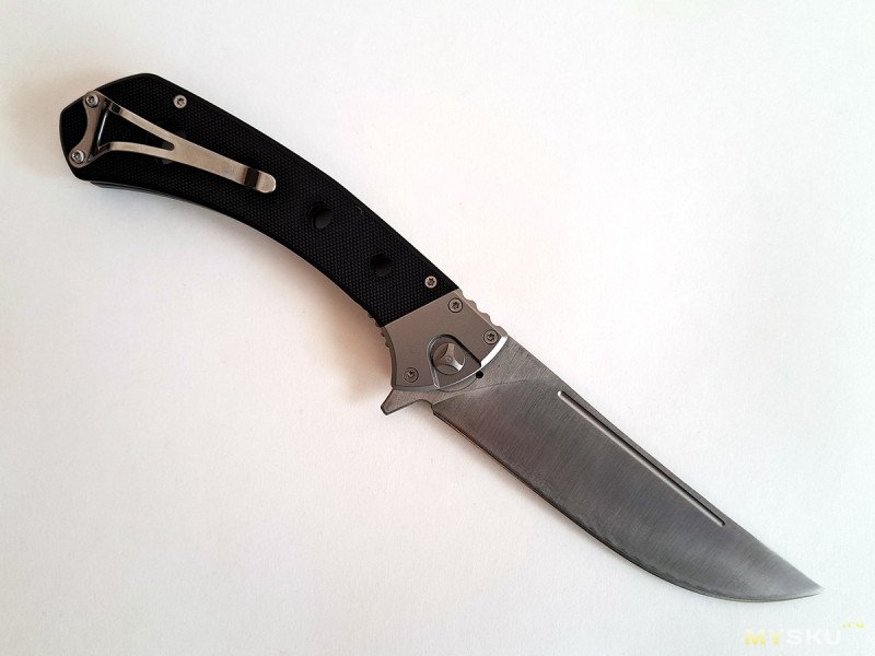 Нож так называемый флиппер, открывается за плавник у основания клинка. Механика отличная, клинок вылетает и затем фиксируется с громким щелчком, если разблокировать замок, то складывается под собственным весом. При этом люфтов никаких нет.
