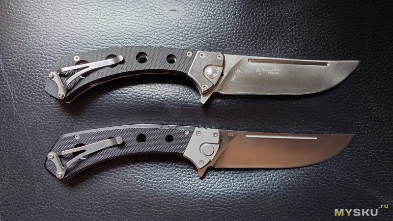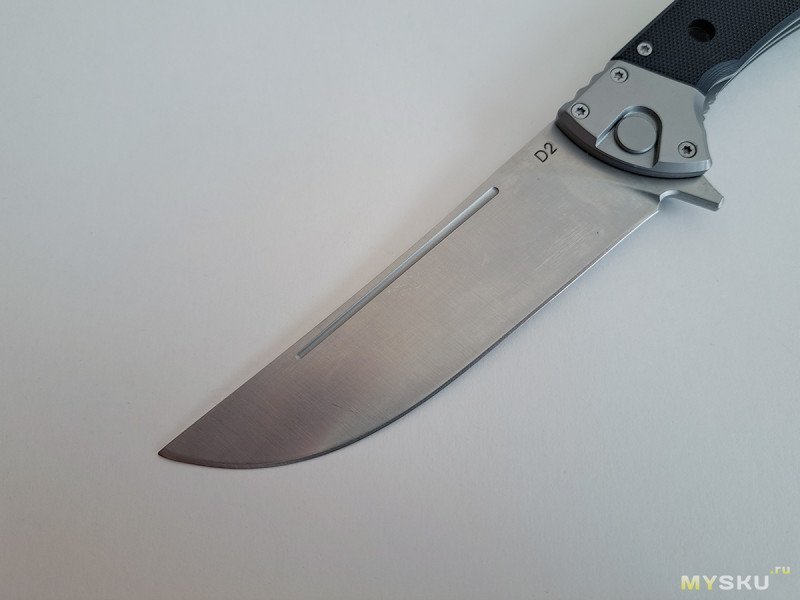 На клинке видны маленькие пятнышки коррозии (вот такие местные продавцы и условия хранения). Поэтому, я верю, что он из D2.