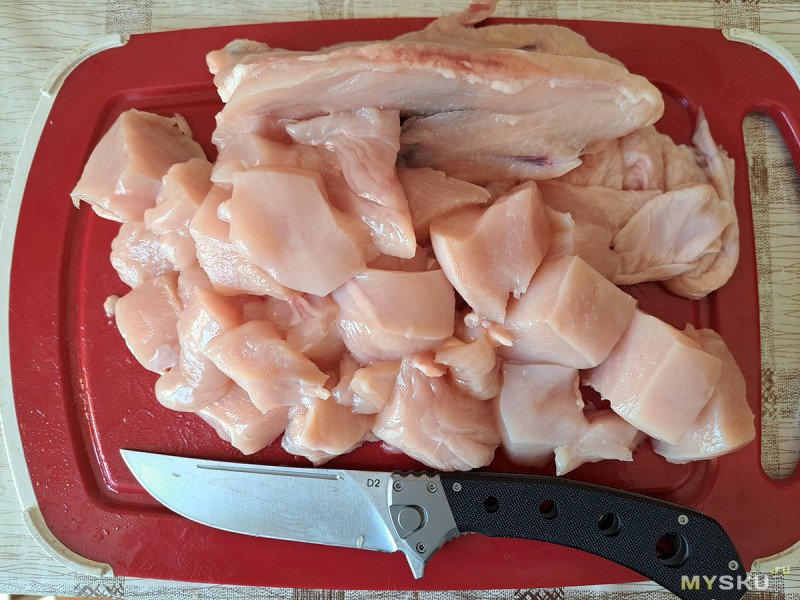 И легко разделываю на кусочки этим мини-пчаком.