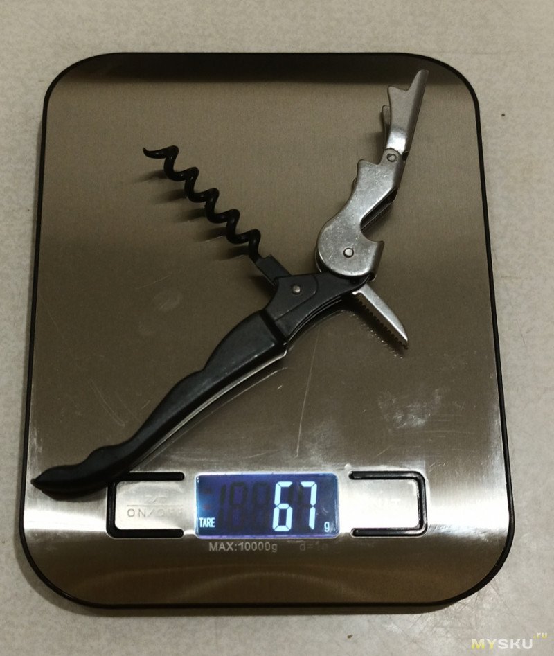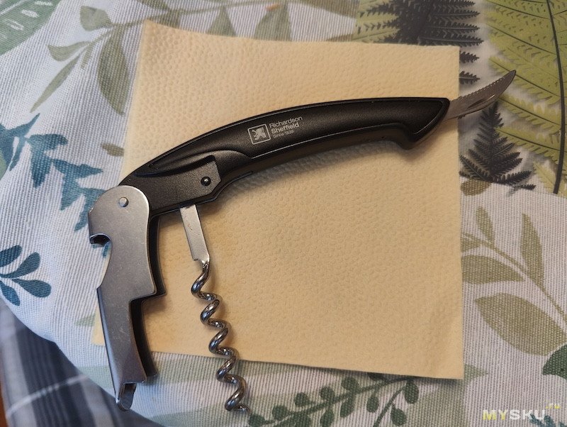 Да и конкретно этот штопор — это такая вещь, которая не стоит такой заботы о нём. По моему, его проще потерять или сломать, чем дождаться когда он начнёт ржаветь.
