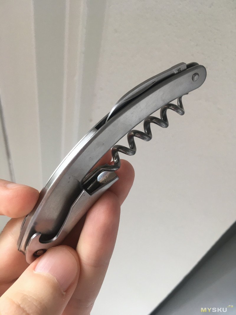 Опять-таки, в ящике нож сомелье занимает минимум места. Вкручивать штопор тоже гораздо легче из-за рычага.