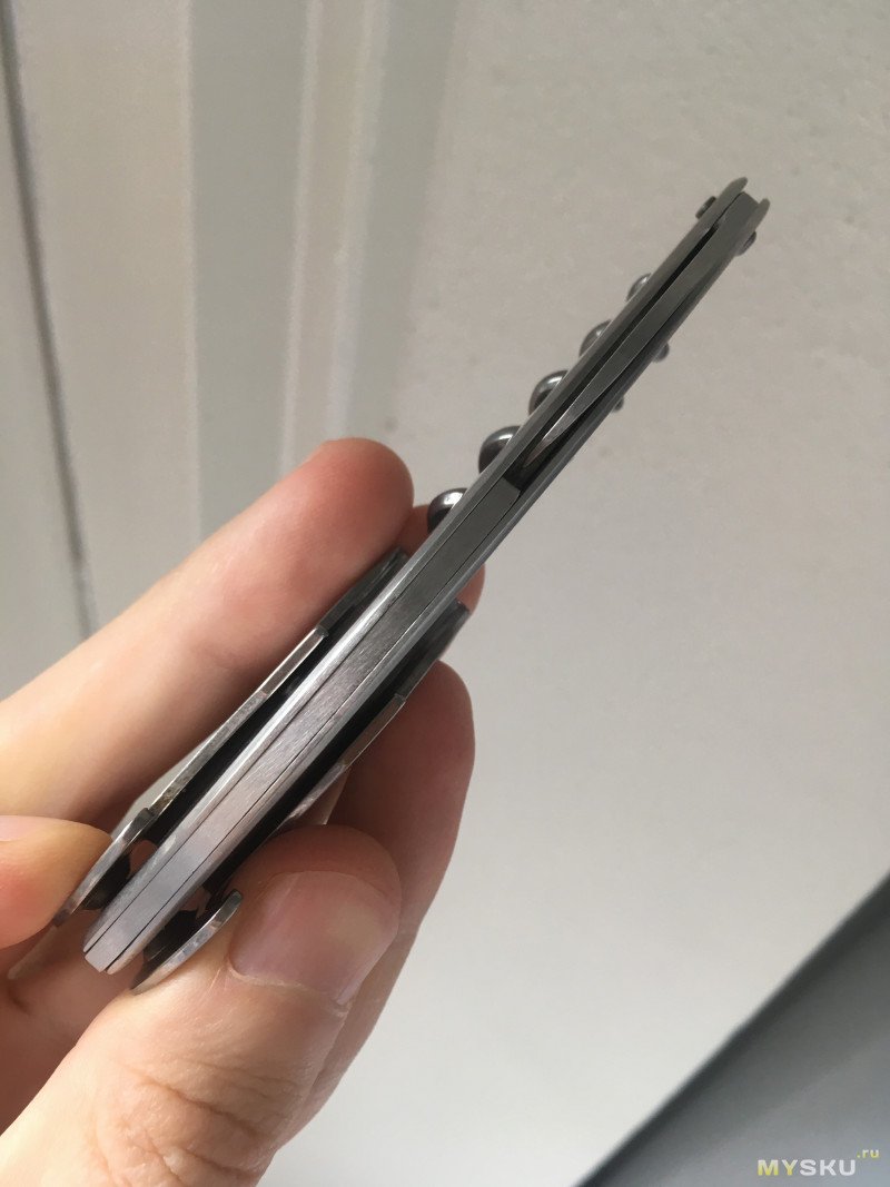 Штопор довольно большой: длина в сложенном состоянии 111 мм, ширина 24мм, толщина 12 мм.