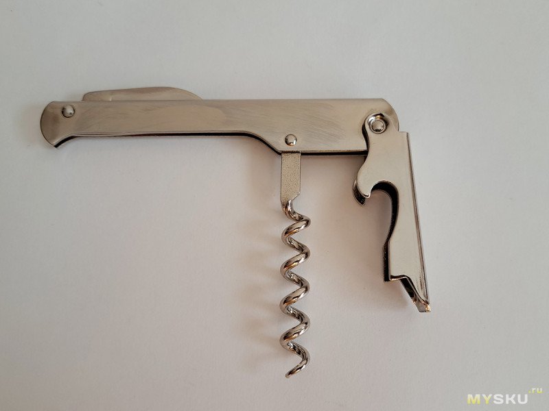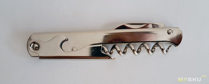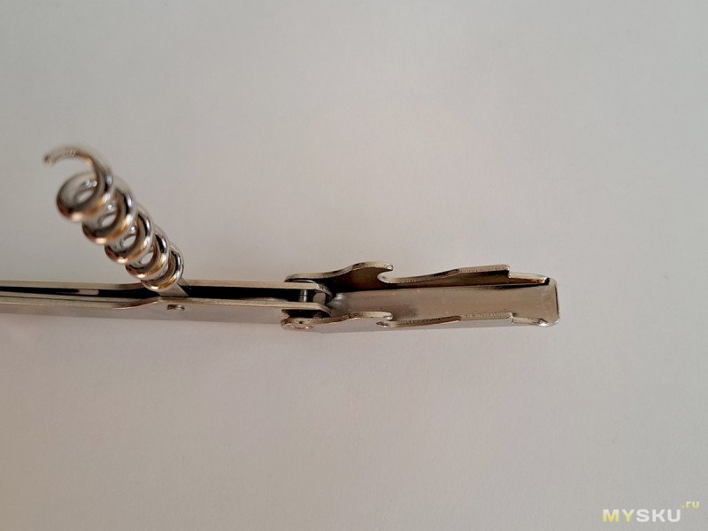 Но не буду нагнетать, штопор абсолютно новый. Он полностью выполнен из стали – проверял магнитом. Все детали хромированы. Похоже, что сталь не нержавеющая (этого и не обещали).