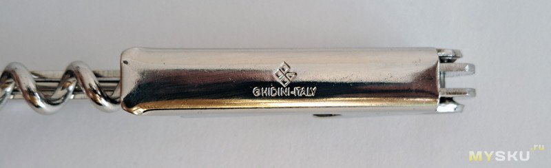 На упоре имеется надпись GHIDINI Italy. Я не уверен, что штопор по такой низкой цене действительно сделан в Италии. Но мне без разницы, лишь бы качество не разочаровало.