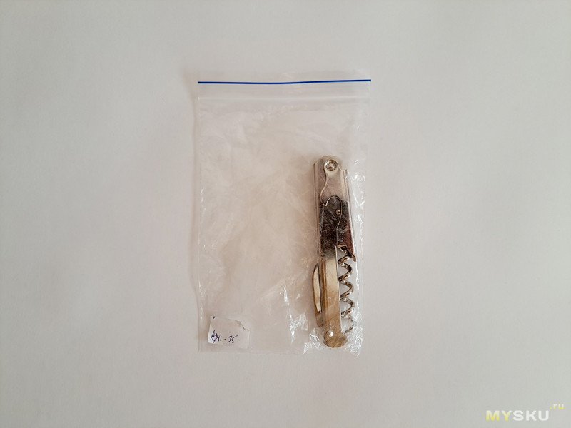 Вид штопора в зип-пакетике напоминает времена Ибея с продажей б/у часов и мультитулов конфискованных в аэропорту.