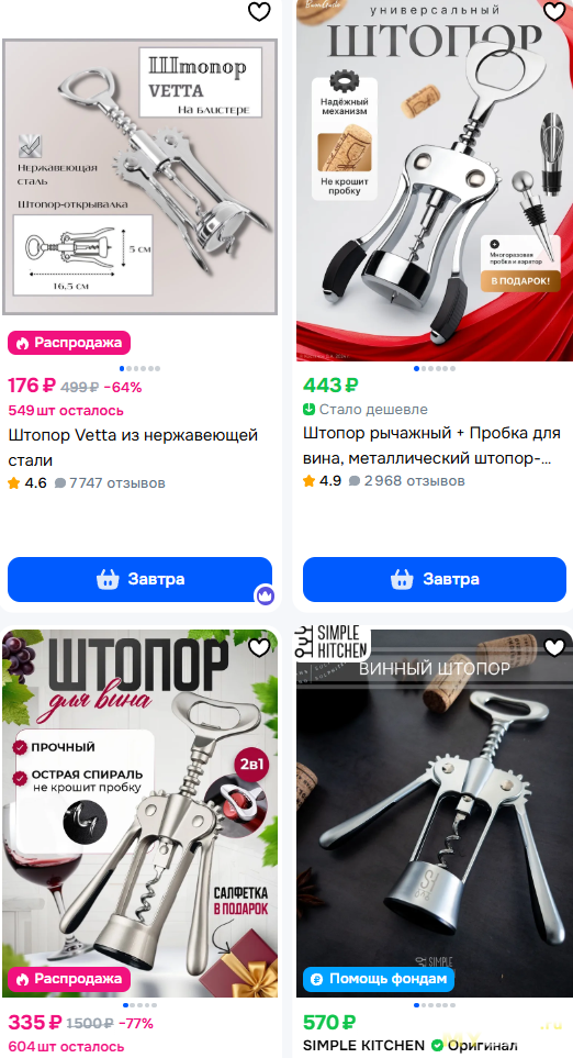 Там ассортимент рычажных штопоров и можно при походе туда гарантированно найти, или же «как повезёт»?