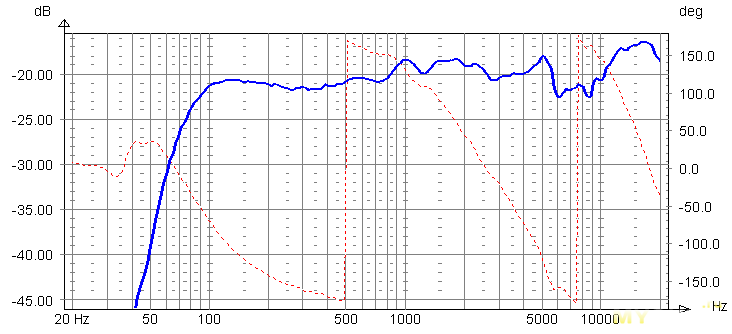 Как было и понятно, глубокого баса тут нет, ФИ добавляет совсем немного (можно было и делать закрытый ящик). Неравномерность в мидбасовом и среднечастотном диапазоне минимальна, провальчик на ВЧ из-за особенностей сведения фильтра. В целом почти мониторные измерения.