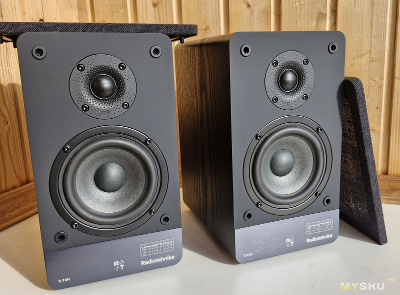 Это уменьшенный вариант полочной акустики S-20N. К советскому наследию, тут только отсылка в дизайне — спереди внизу алюминиевая пластинка с логотипом и «кривулькой» АЧХ. В остальном это обычная современная полочная акустика, только довольно компактная (высота корпуса 25 см). Корпус из 12 мм МДФ (очень жесткий), сверху виниловая пленка (пока только один цвет).