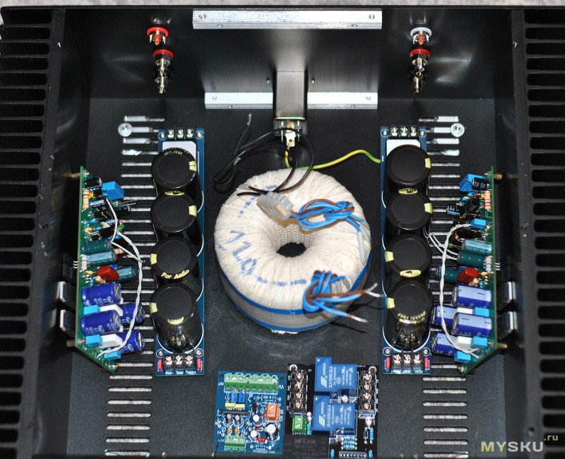 Если мало 50 Вт, есть линейный выход с предварительного усилителя на мощник. Акустика подключается зажимом кабеля либо наконечниками 4 мм «банан».