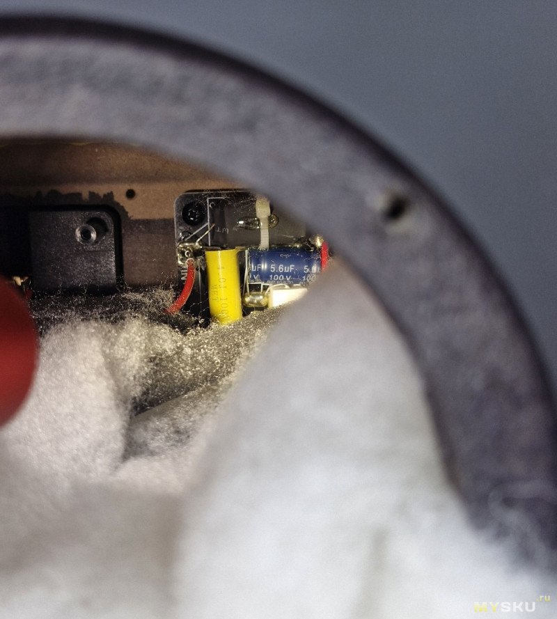 Внутри есть звукопоглатитель (синтепон) и демпфирование кабелей: