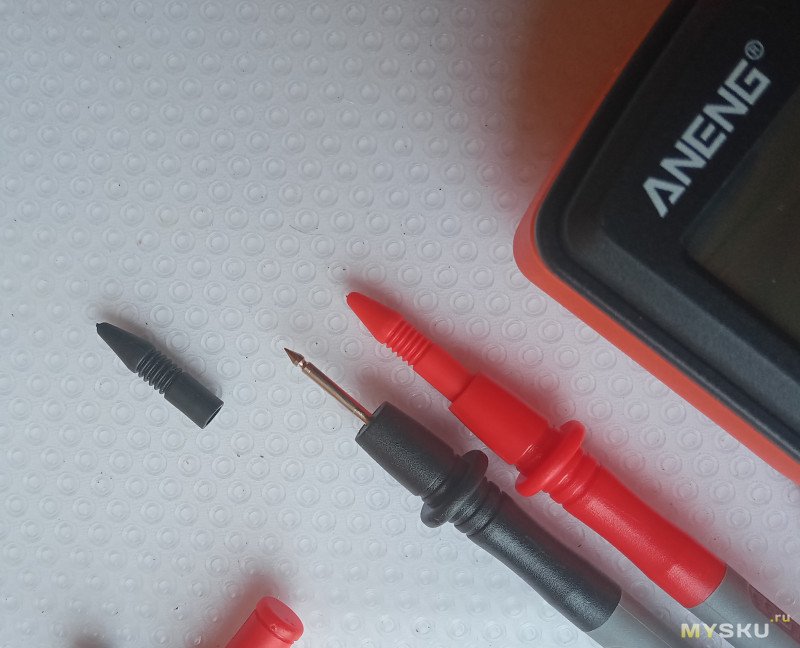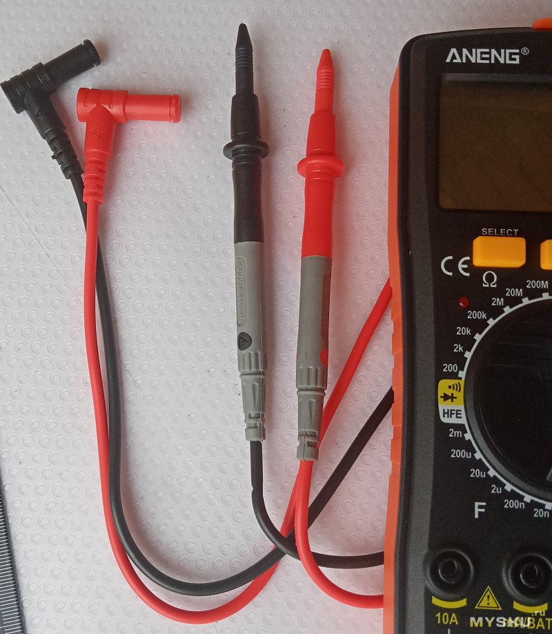 Щупы — понравились. Серая часть — резина, и наконечники. Очень хороши. У ut210е при покупке были хуже помню (сейчас «не родные» там):