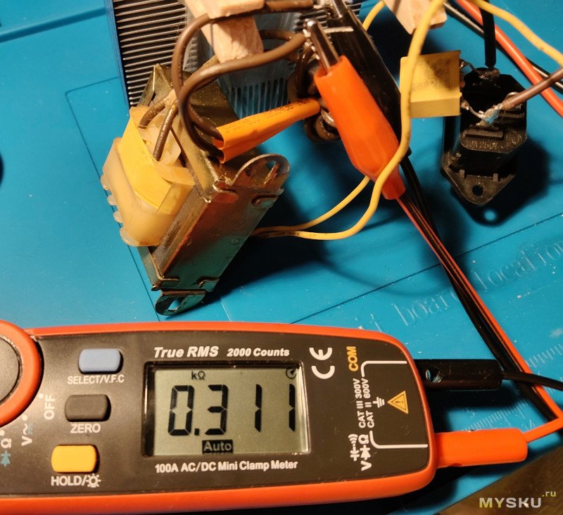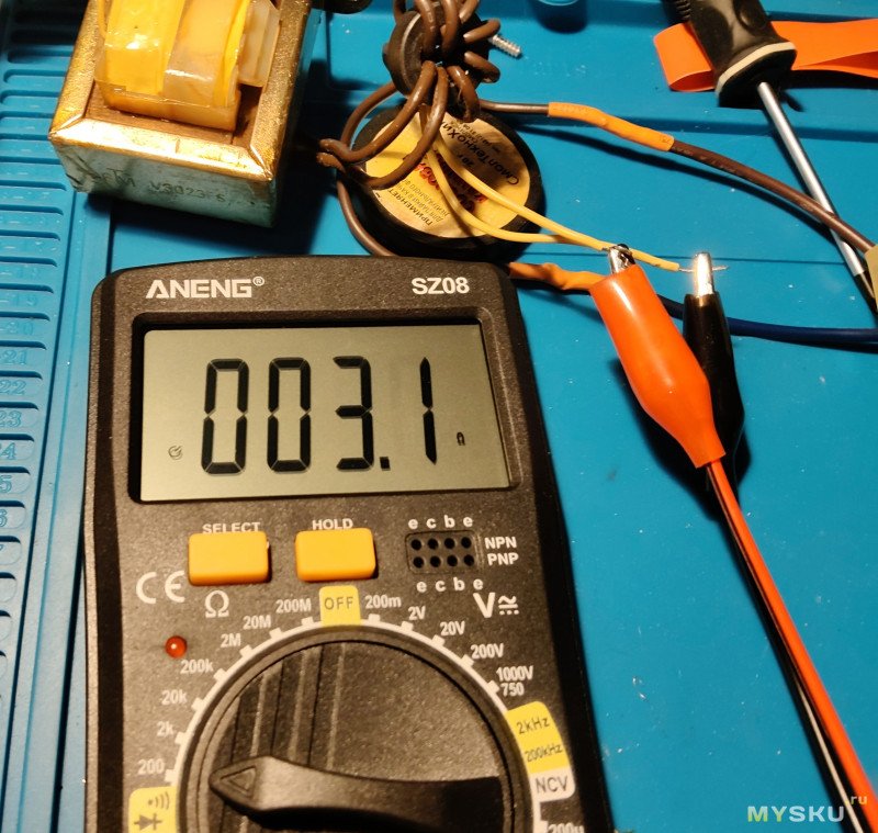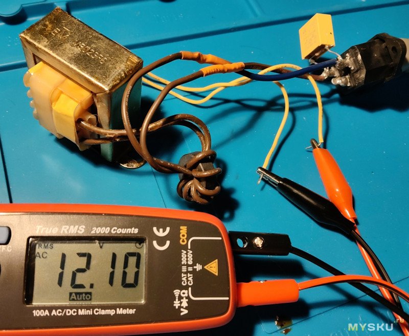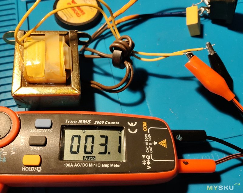 1) Измерение постоянного и переменного напряжения (подопытный — трансформатор «ETM V3023FS», к сожалению информации в сети о нём не нашёл):