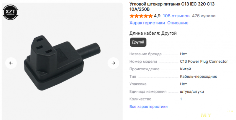 Самый типовой для подключения электроприборов метровый Шуко — C13 стоит 420₽ с озон картой.