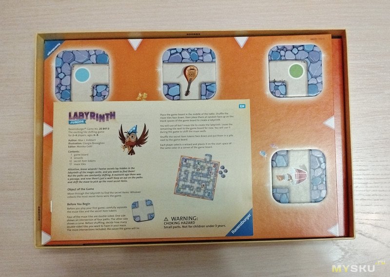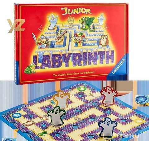Неожиданно увидел « Сумашедший лабиринт». Из всей серии игр взял самую простейшую «Лабиринт Юниор». Издание 2022 от бренда Ravensburger – это уменьшенная и упрощенная версия популярной игры «Сумасшедший Лабиринт», которая впервые была издана в 1986 году.