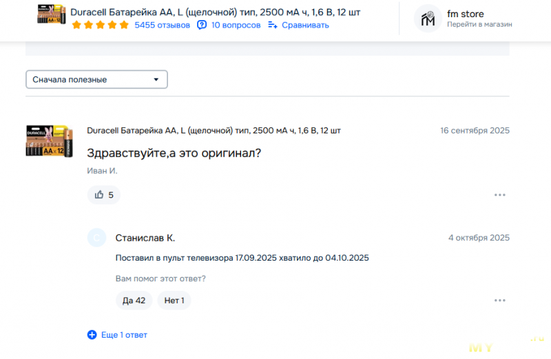 Отзыв со страницы товара