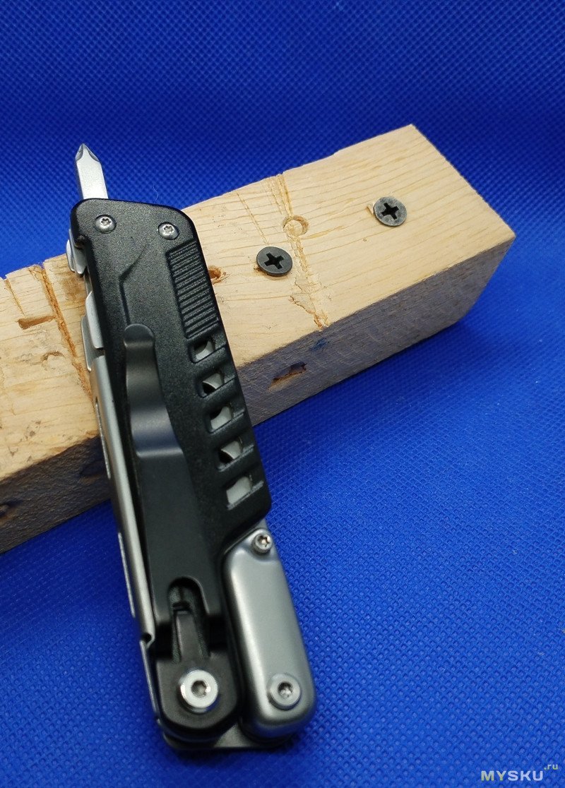 Для меня плоскогубцы, нож и крест со шлицом отвертка вообще не нужны. Все это у меня на брелке с ключами массой 34 грамма. Не обременяют карман. А вот ножницы — это ради чего и купил этот мултитул.