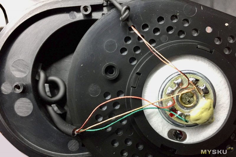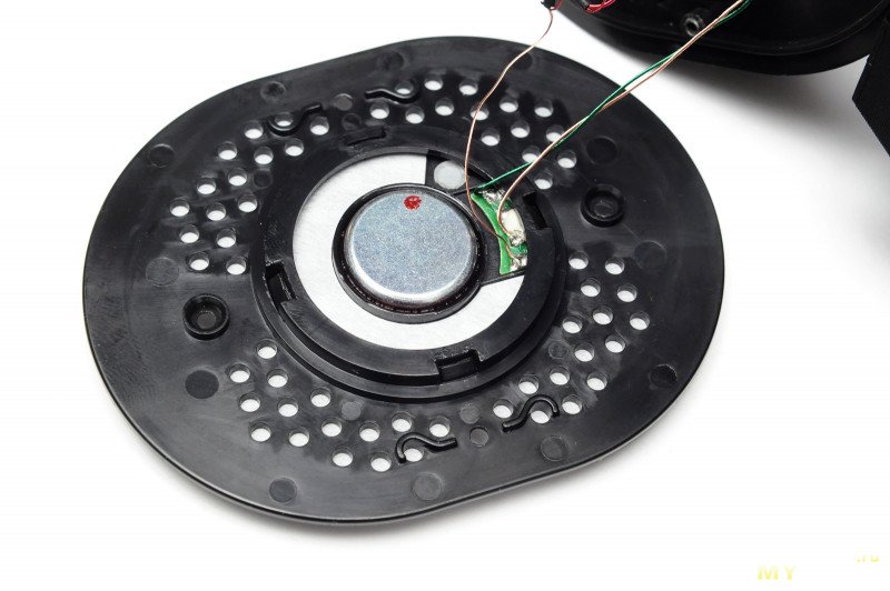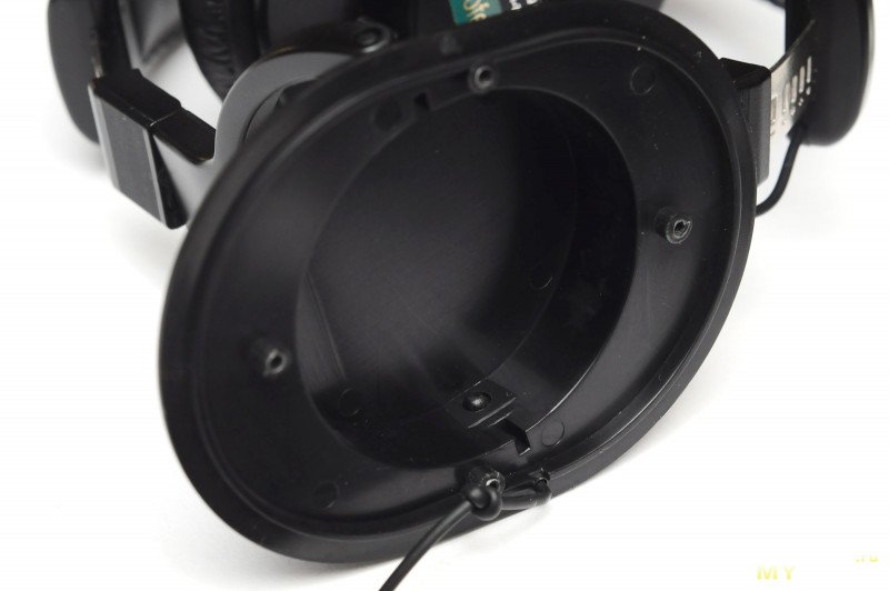 Внутри чашек нет ничего интересного – голый пластик. Иногда при твике наушников сюда добавляют поглощающий материал, но эффект от него не очень большой.