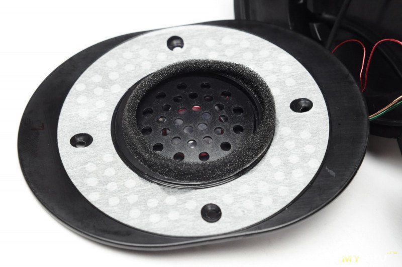Сняв амбушюр, я немало удивился, когда увидел драйвер совсем не такой, как у настоящих, и даже у поддельных наушников. На фотографиях в Интернете поддельные драйверы очень похожи на настоящие и отличаются только в нюансах. А тут – черный, с гладкой верхней крышкой. В этот момент я вспомнил, что еще не измерял сопротивление этих наушников. Оно оказалось 32 Ома, а не 63 Ома, как написано в инструкции (для 1 кГц, но индуктивность тут слишком малая, чтобы дать большую разницу по сравнению с постоянным током). Это бесспорное доказательство неоригинальности, ведь про версию 32 Ома на официальном сайте ничего нет.