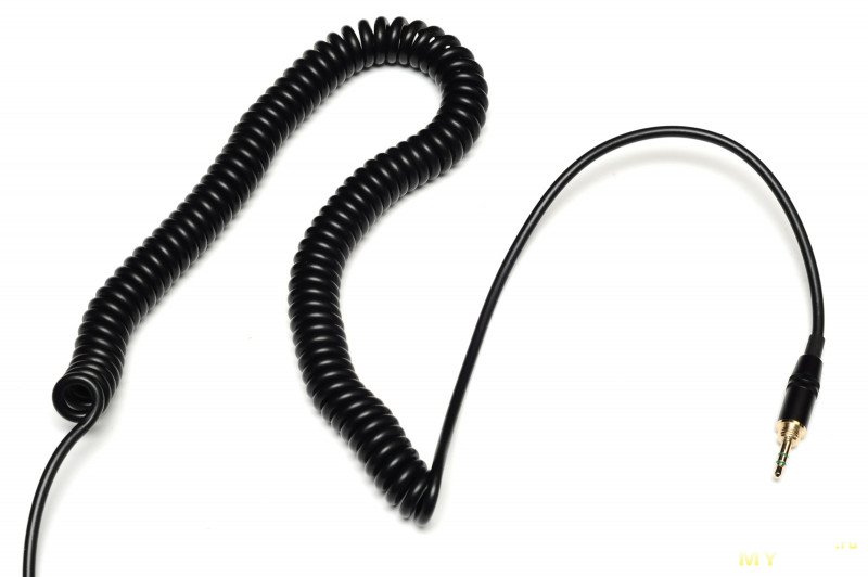 Шнур весьма основательный – диаметр по изоляции 4 мм. Основная часть шнура свернута в спираль. Возле наушника он имеет прямой участок длиной около 60 см, а возле штекера – длиной около 30 см. Если полностью растянуть шнур, то можно отойти в наушниках на расстояние около 3 м от аппарата, куда они подключены.