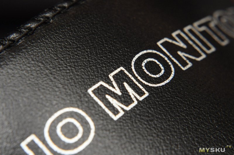 Оголовье обшито кожзаменителем, строчки ровные, буквы также нанесены ровно. С нижней стороны дужки внутри что-то мягкое, вероятно, поролон. Внутри оголовья проходит пружинящая стальная пластина и провод к правому наушнику.